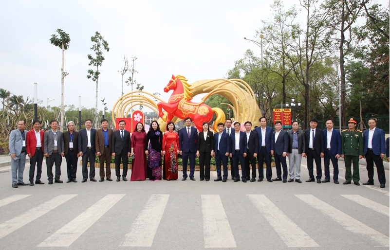 Ngay sau nghi thức khai trương, các các đồng chí lãnh đạo và đông đảo Nhân dân đi tham quan, chụp ảnh lưu niệm tại đường hoa, tạo không khí vui tươi, phấn khởi trong những ngày đầu Xuân.